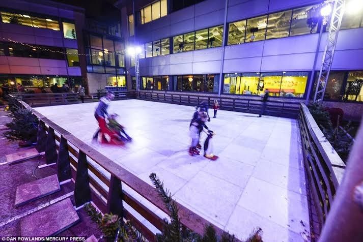 Një biznesmen që merret me shërbime interneti, ka ndërtuar në parkingun e zyrave një fushë për patinazh, në mënyrë që t’i inkurajojë punëtorët e tij.